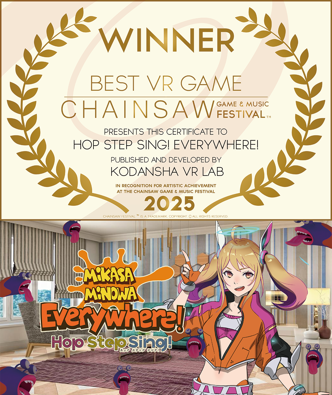 Hop Step Sing! Everywhere!が、世界中のゲーム開発者、作曲家、映像作家による傑出したプロジェクトを表彰するChainsaw Game and Music Festivalにおいて、 Best VR Gameを受賞しました。